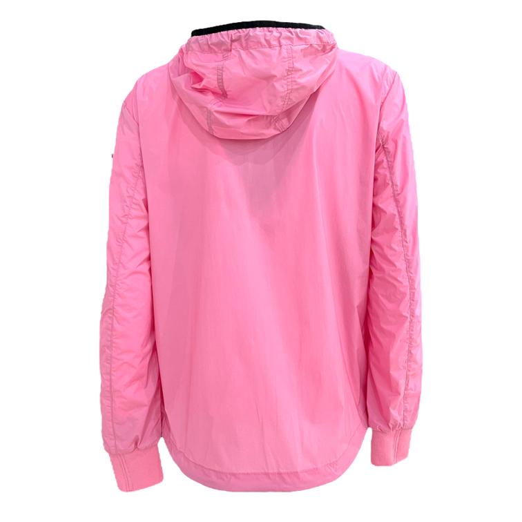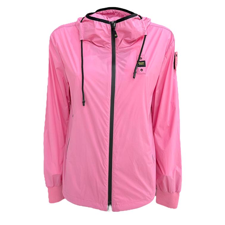 Presenta cappuccio fisso,chiusura centrale con zip spalmata.Mostra due tasche davanti con zip obliqua, bordo con coulisse interna e caratteristico patch Blauer sulla manica.